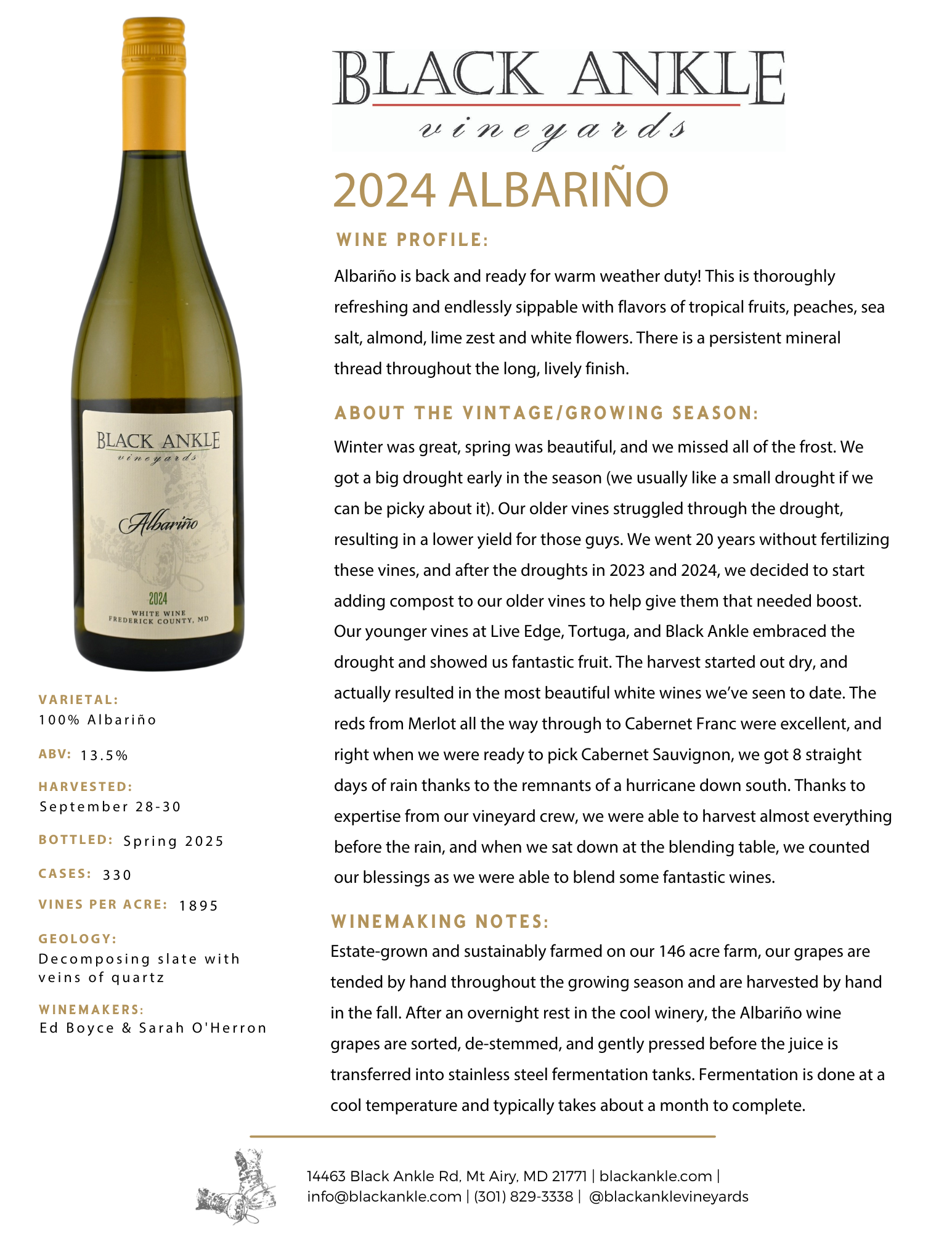 The 2025 Albariño is available for pre-order here. Expected release Spring 2026.