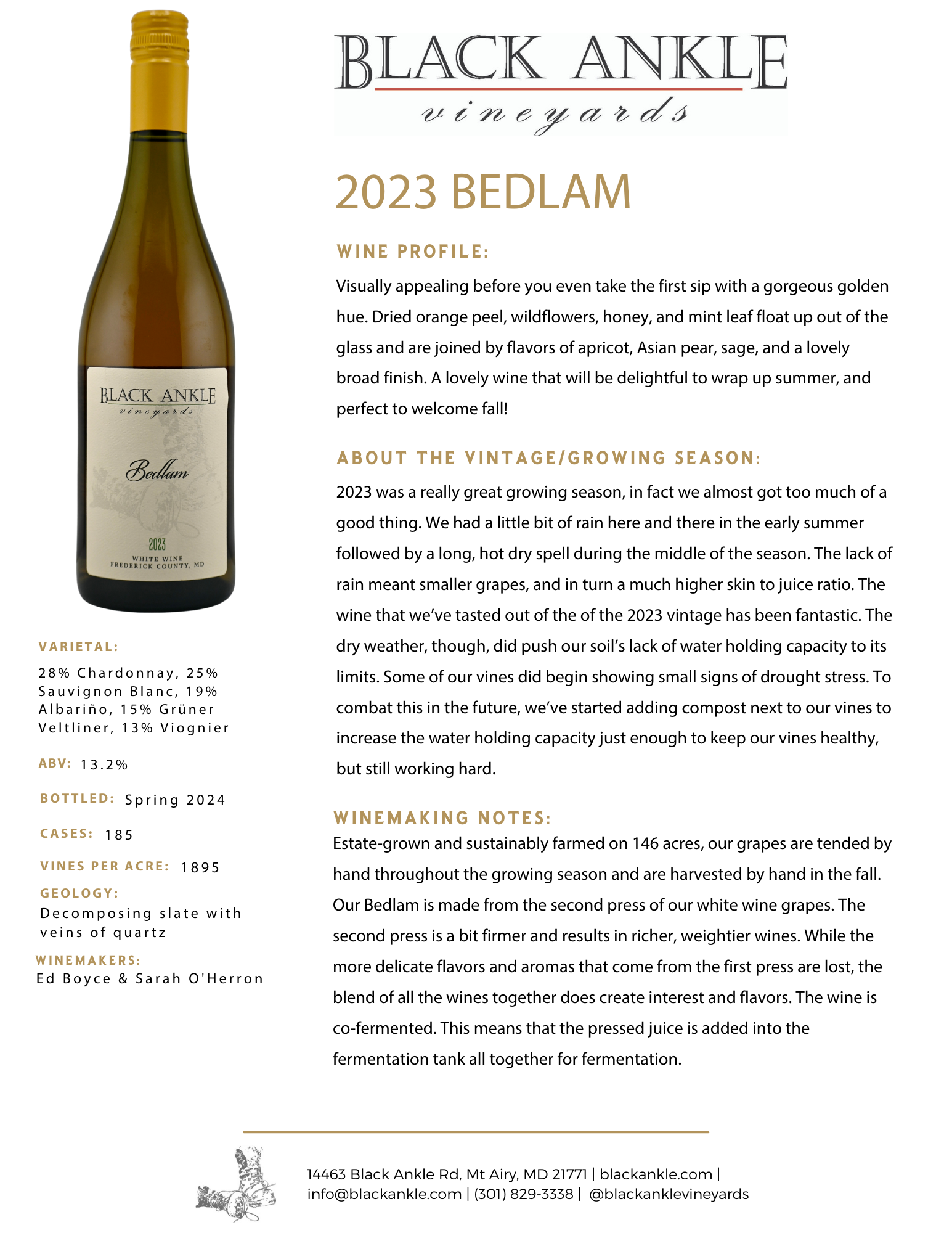 Our latest release, the 2024 Bedlam is currently available for sale in our Tasting Room and online.