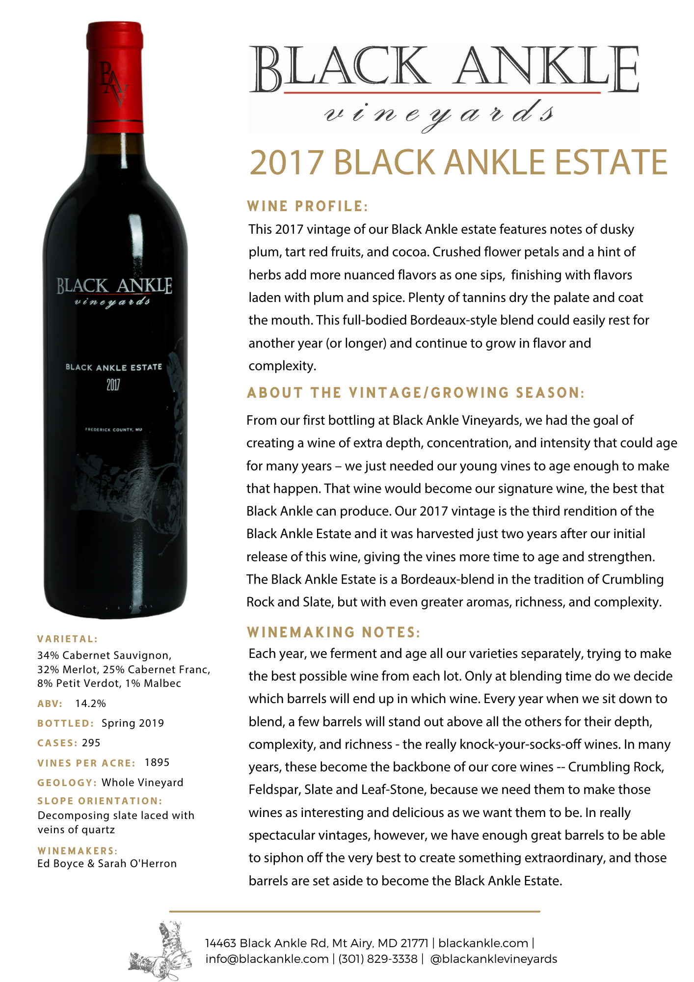 The 2021 Black Ankle Estate is slated for release in Spring 2026.