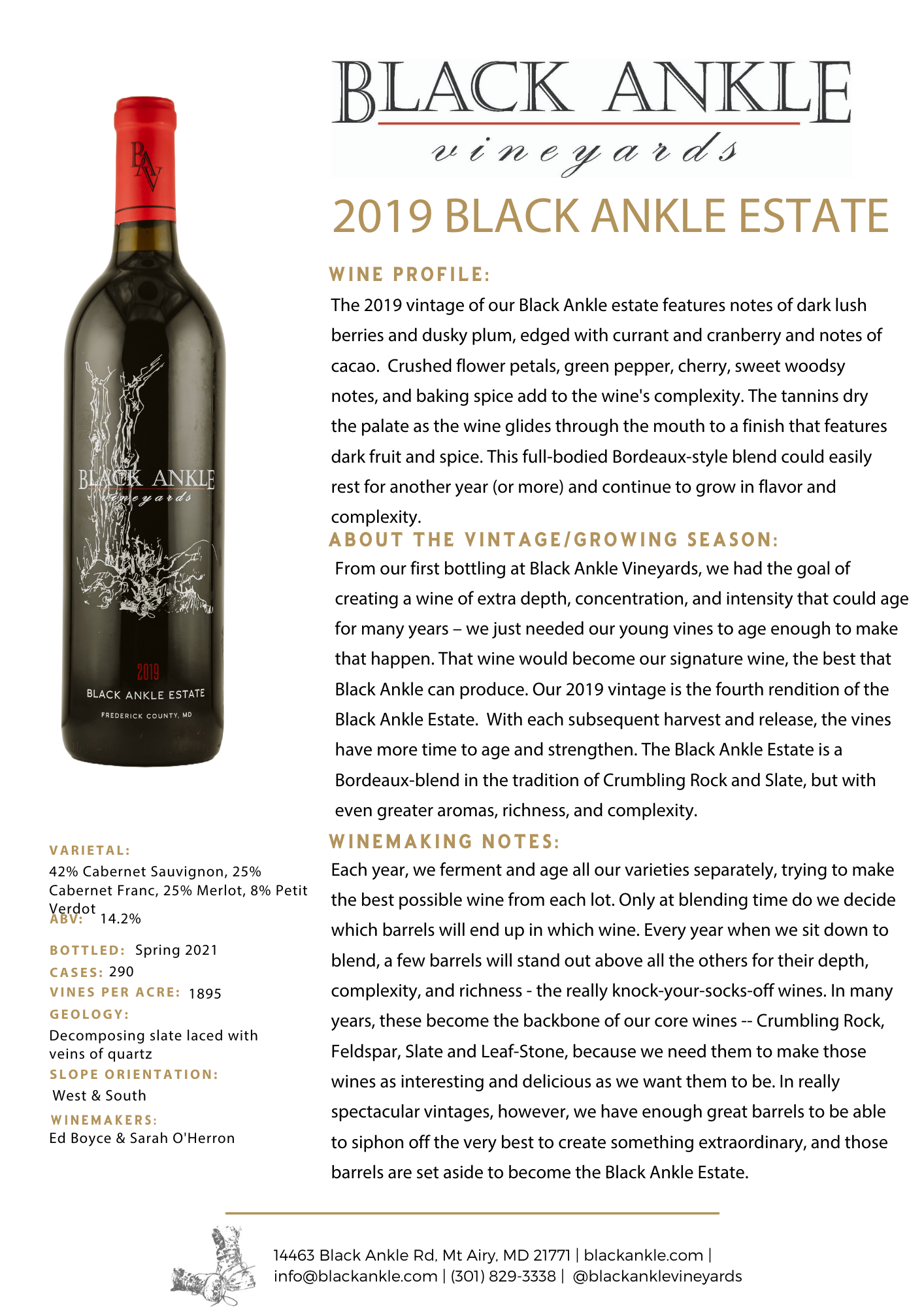 Our latest release, the 2019 Black Ankle Estate is currently available for sale in the Tasting Room and online.
