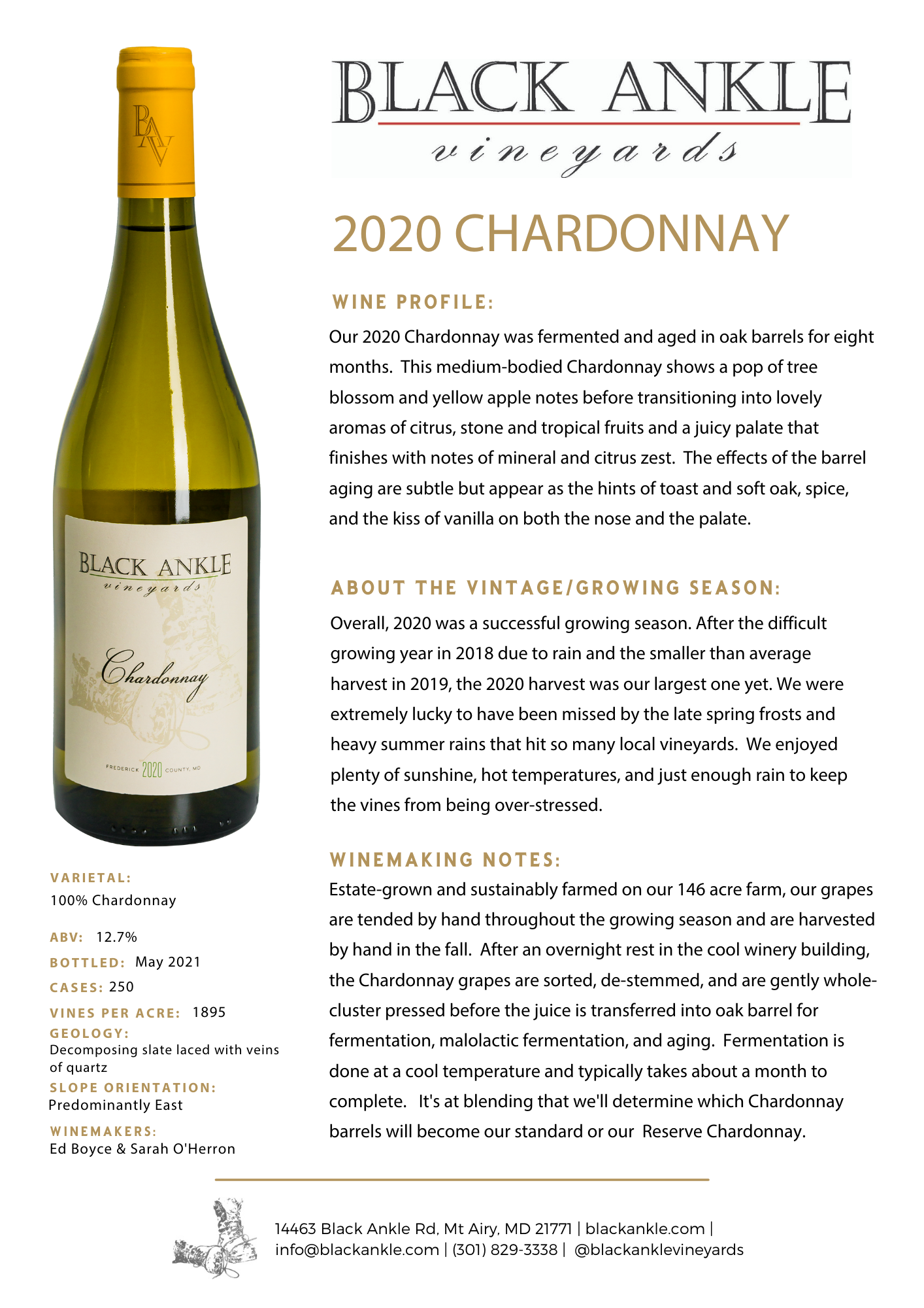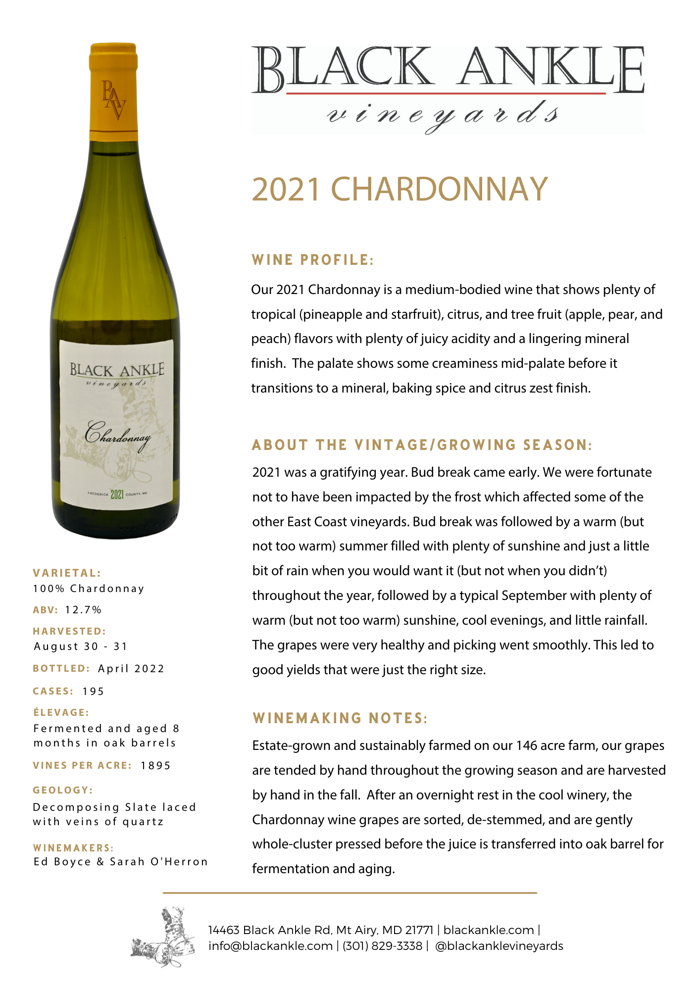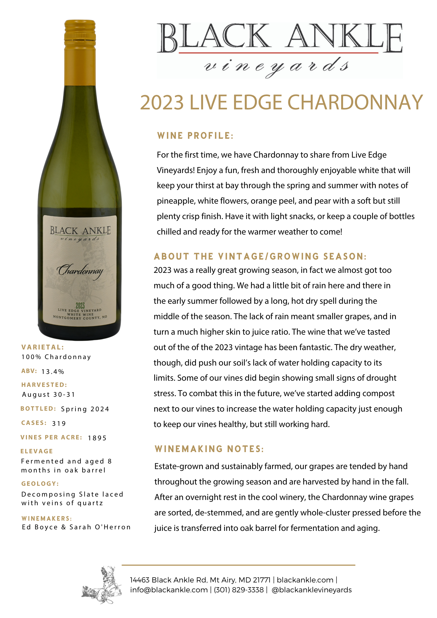 Our chardonnays are made from fruit from both our black ankle and live edge vineyards and are made in an acidic and citrusy european style