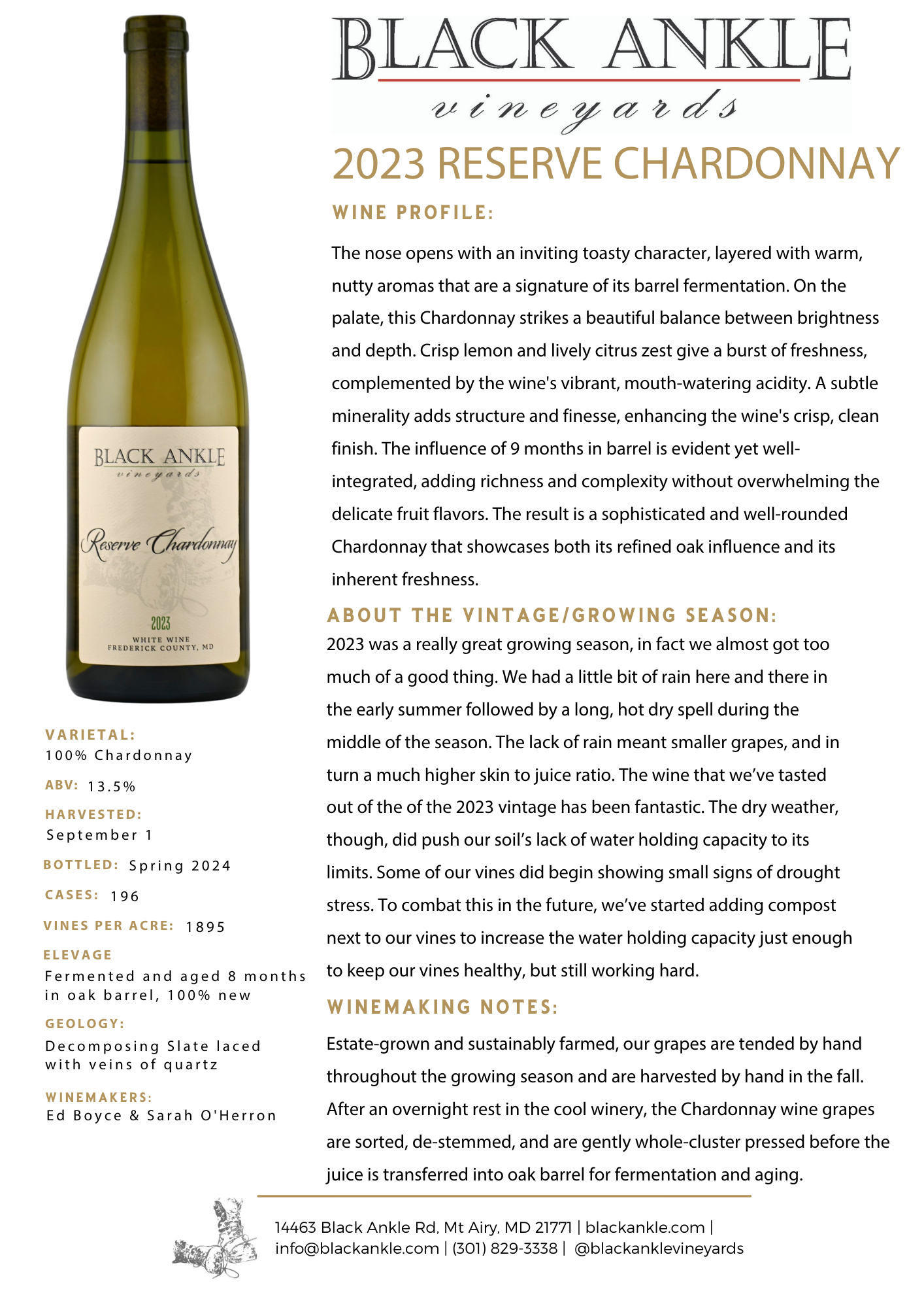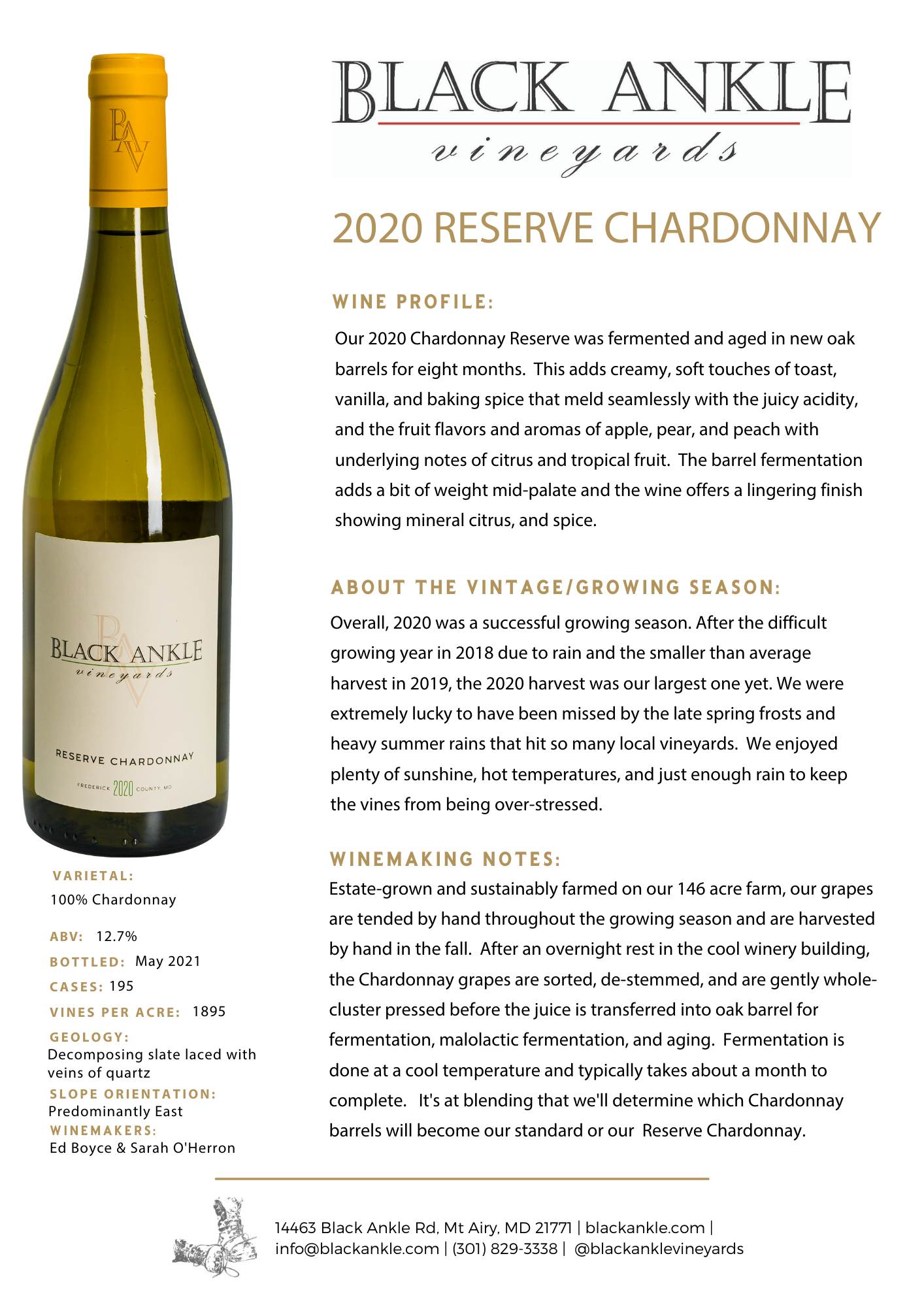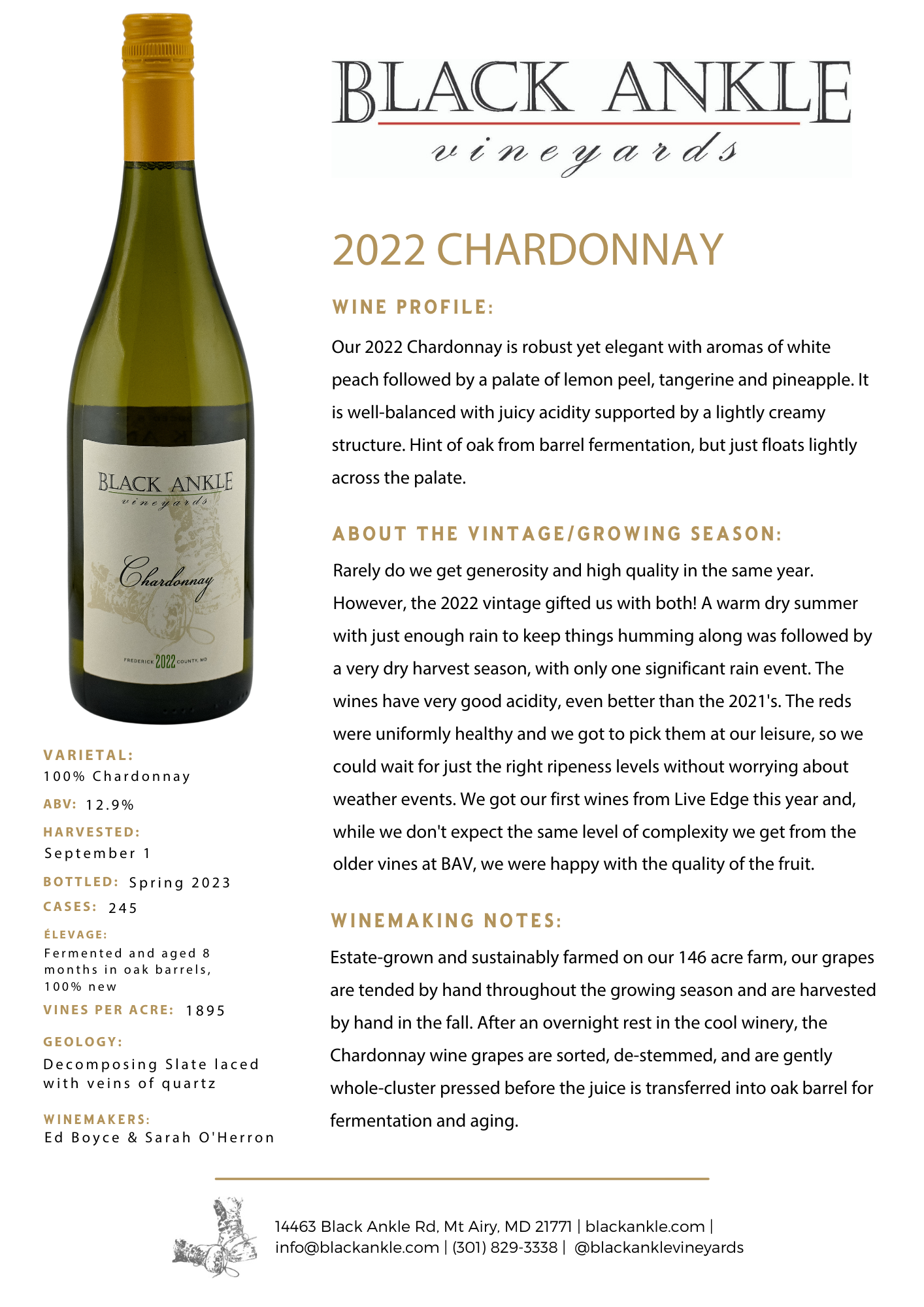 Our chardonnays are made from fruit from both our black ankle and live edge vineyards and are made in an acidic and citrusy european style