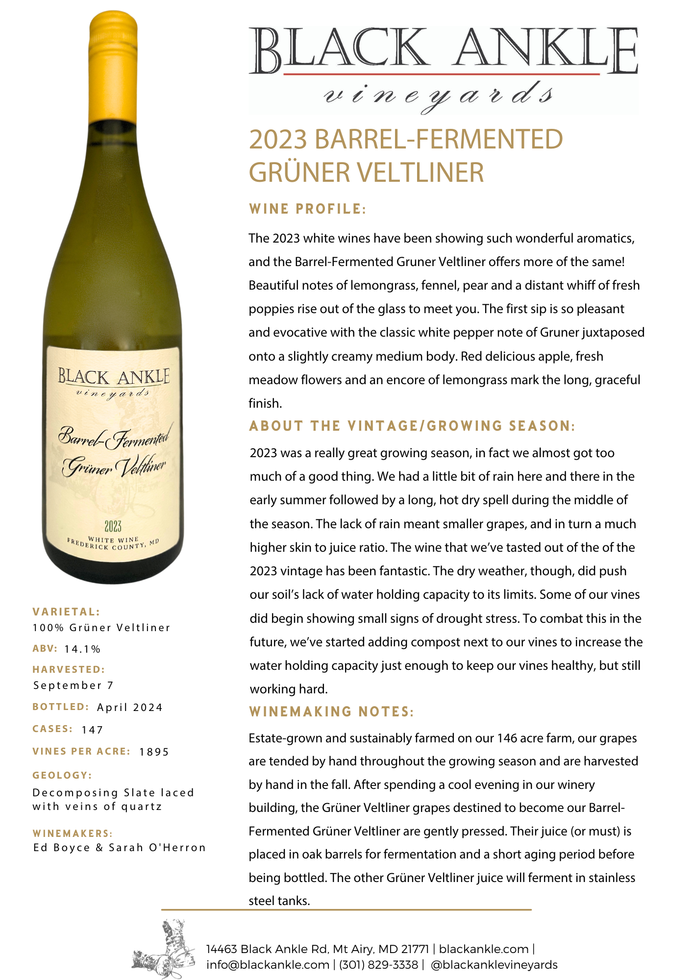 The 2024 Barrel-Fermented Grüner Veltliner is slated for release in Spring 2025.