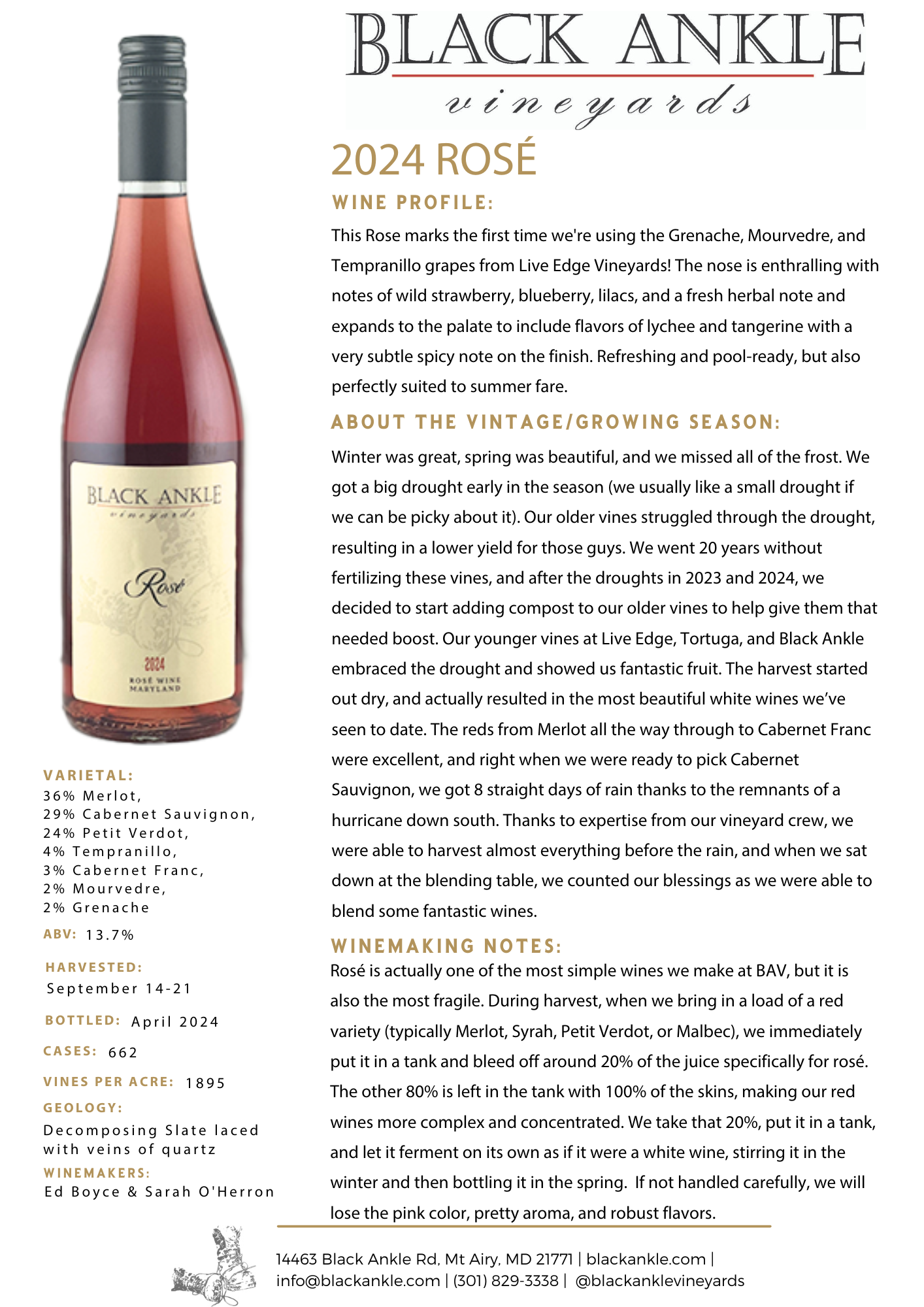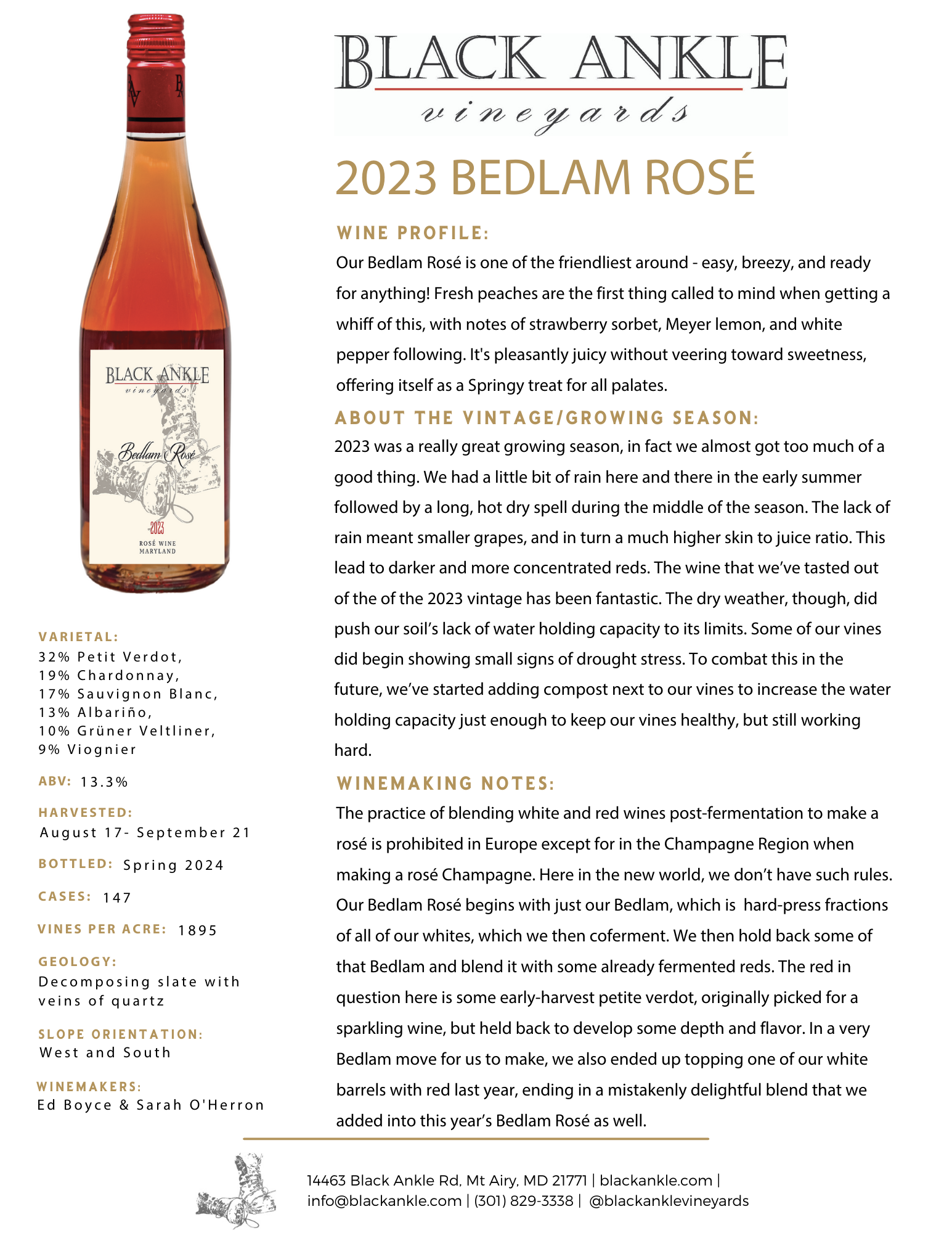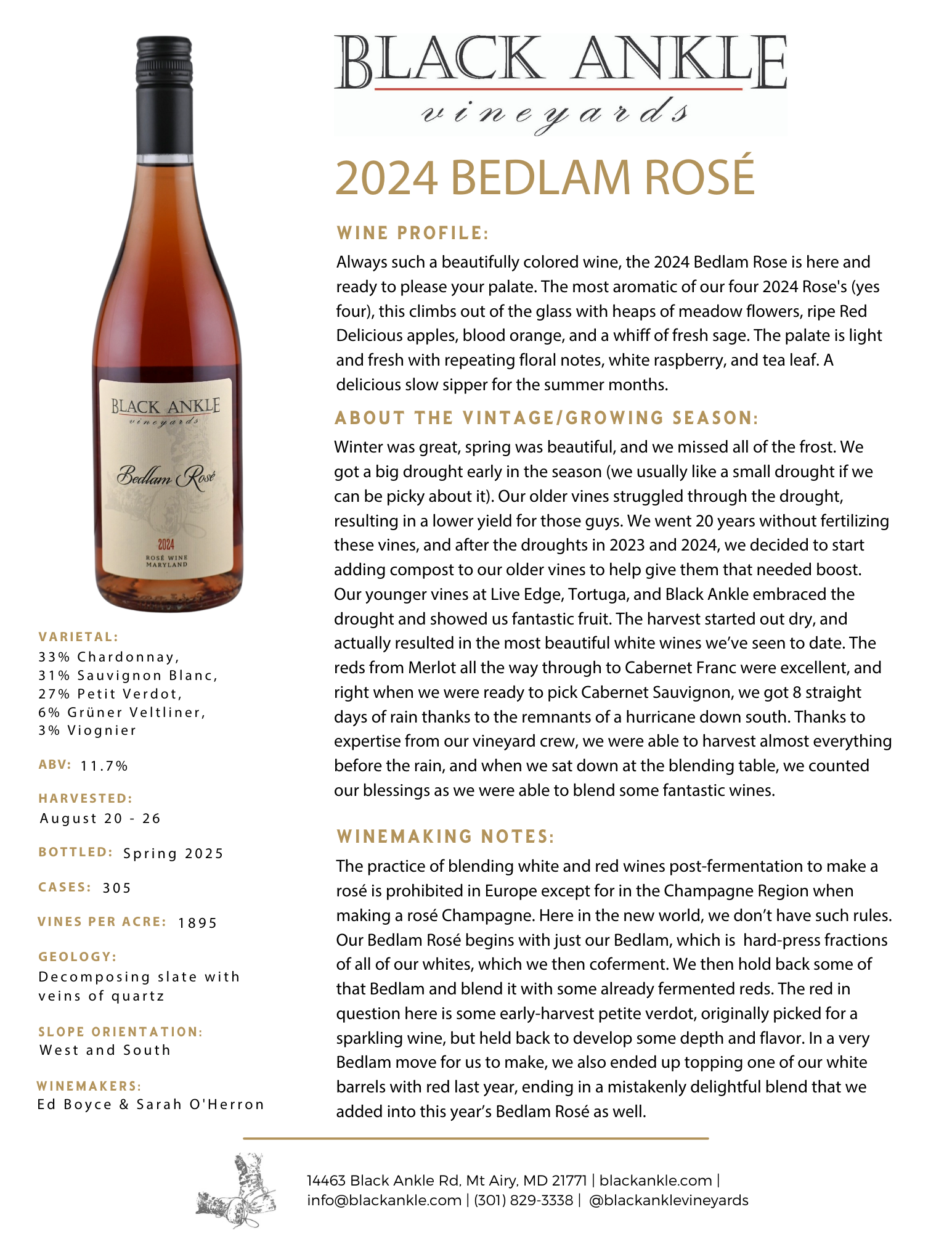 The 2024 Bedlam Rosé is currently available for purchase in the Tasting Room and online.