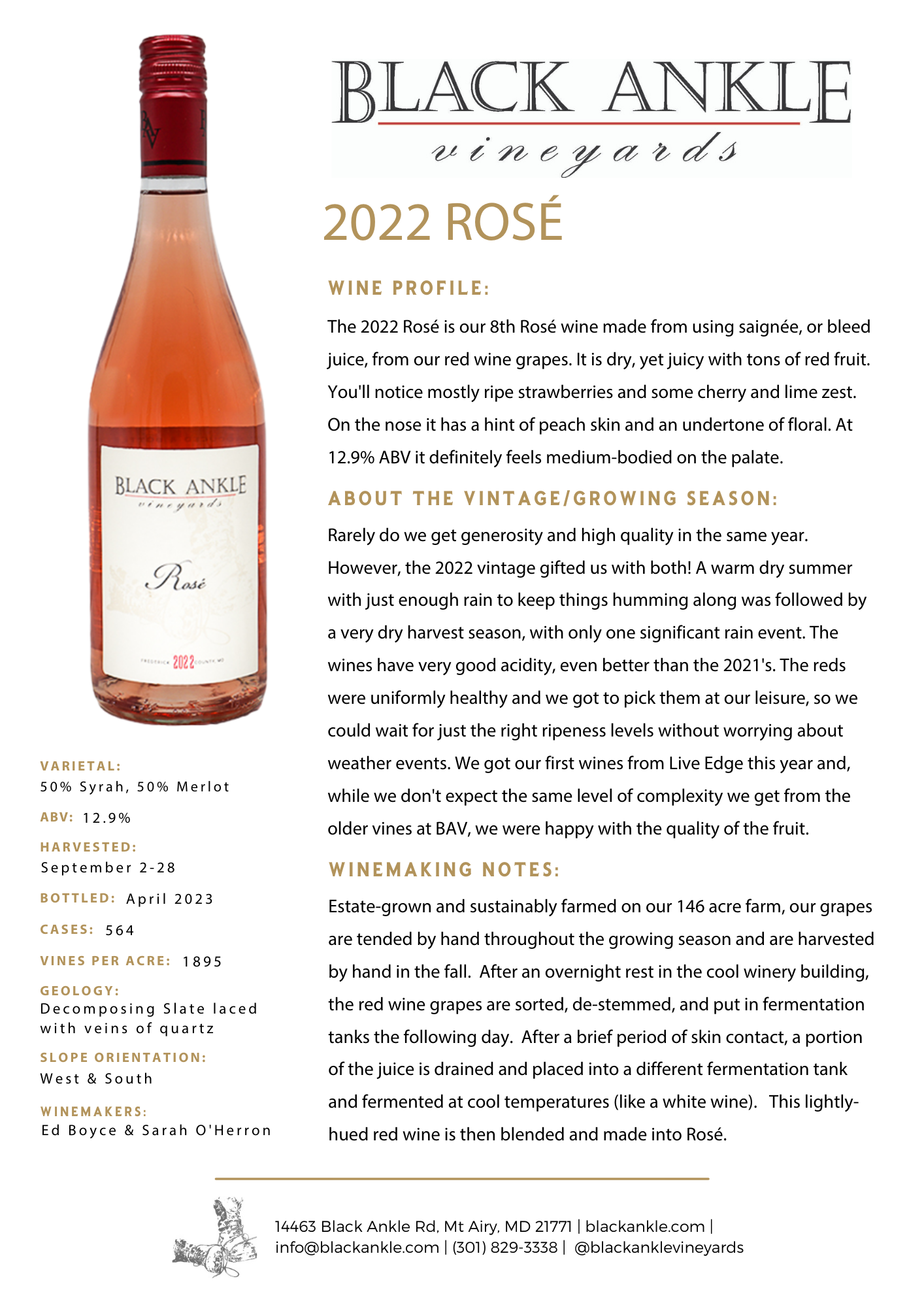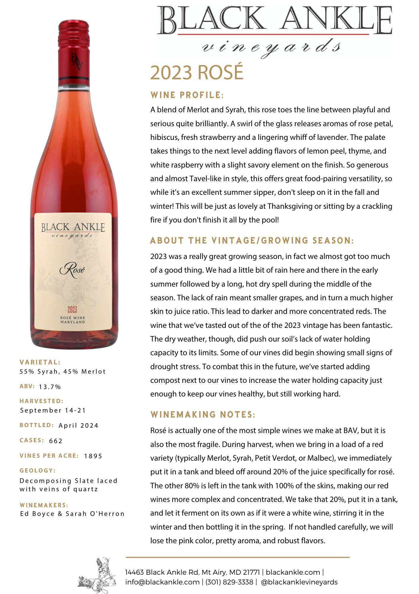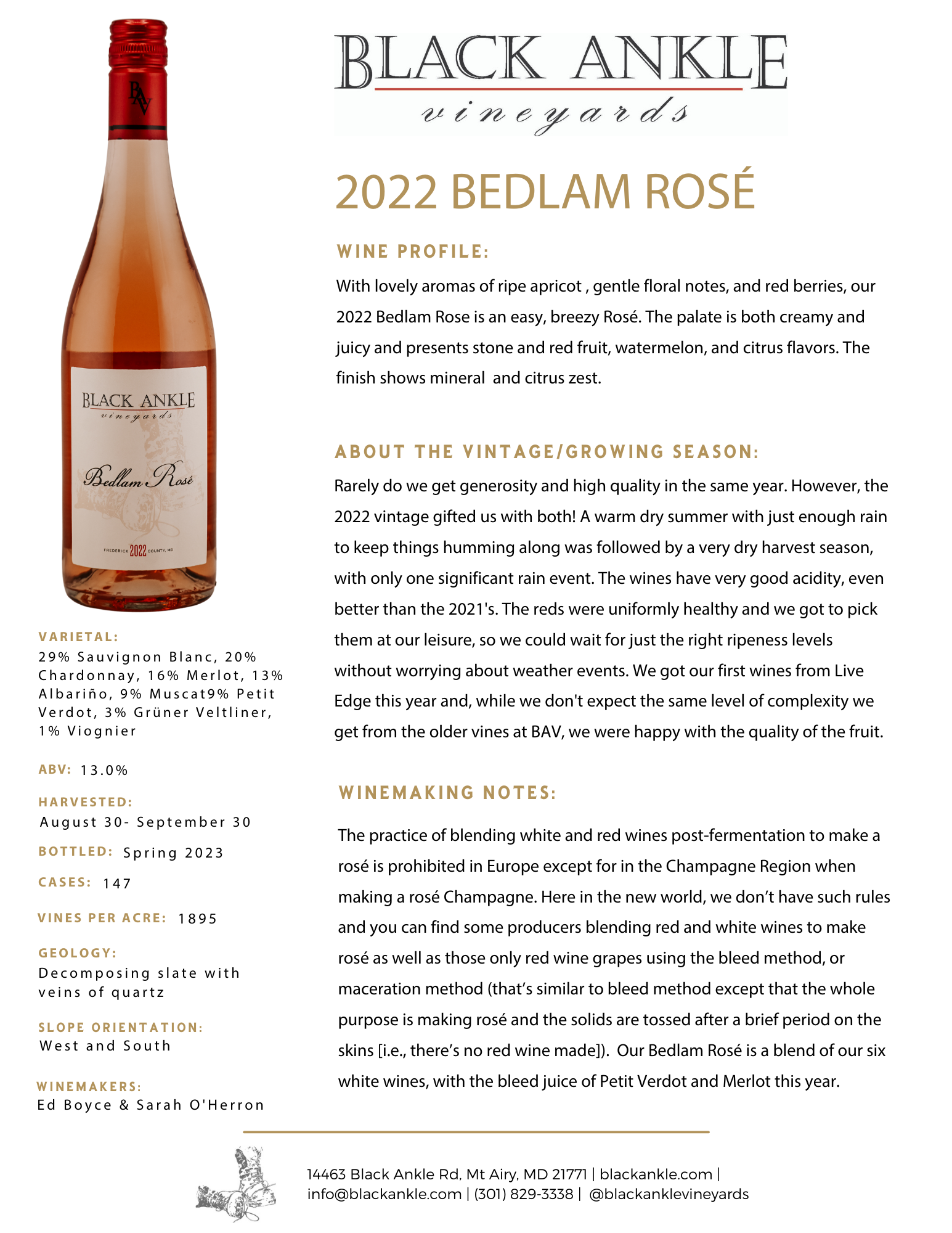 The 2024 Bedlam Rosé is currently available for purchase in the Tasting Room and online.