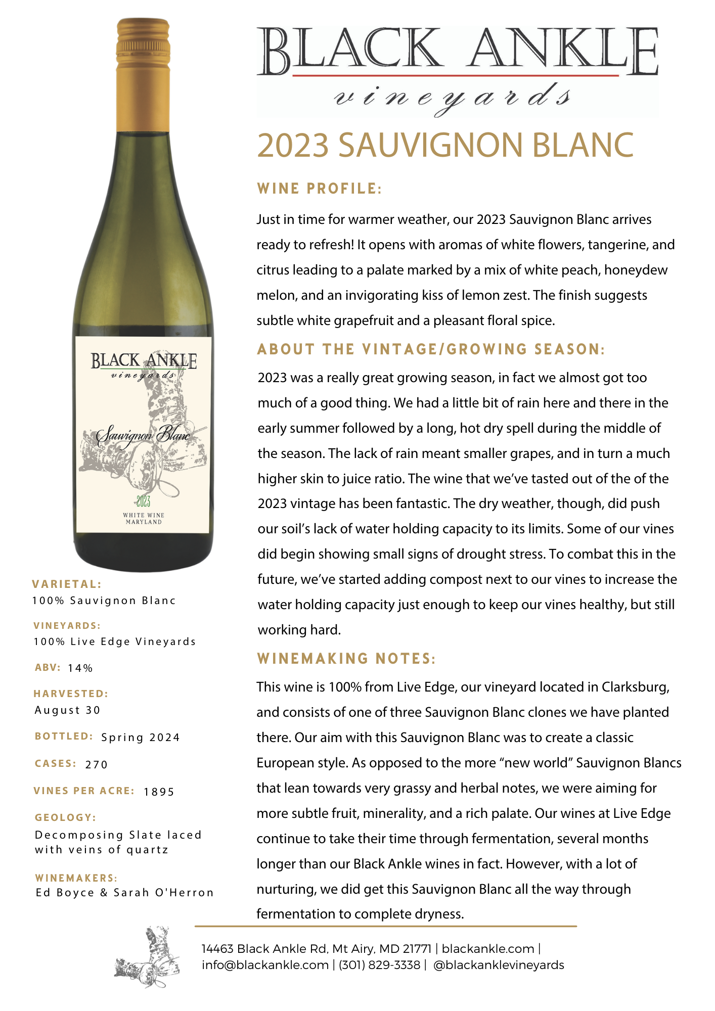 The 2025 Sauvingnon Blanc is slated for release in Summer 2026.