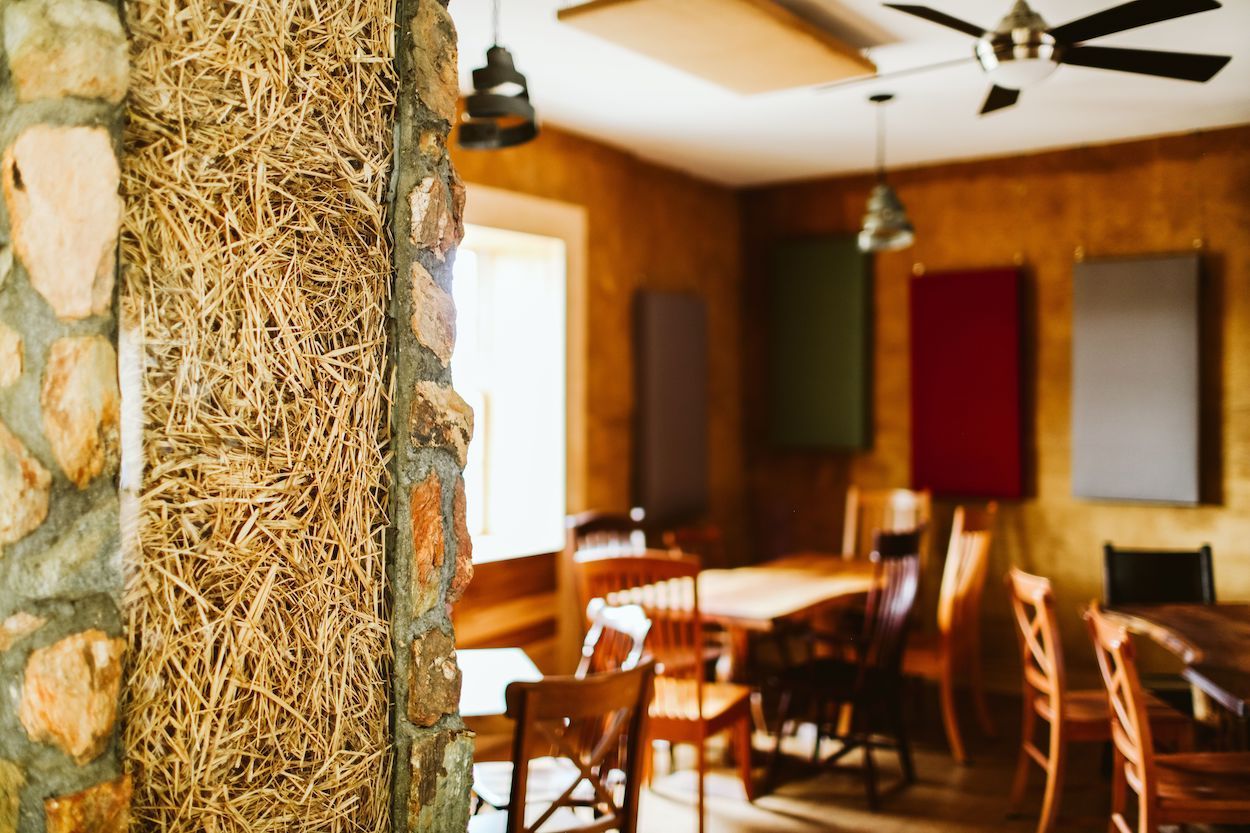 We decided to embrace that challenge with a basic philosophy: use what we have and keep it simple. This little idea (it seemed little at the time, anyway) has had an enormous effect on what BAV has become. Need to frame a building to store barrels and host customers? Why not use our own trees and not bring in truckloads of boards? Need electricity? Why not generate it onsite from our own sunshine? Need to reduce the heating/cooling load on the buildings? Why not use our home-grown straw for insulation and build window overhangs to block the sun in the summer, but not in the winter? Want ripe, healthy grapes? Why not let wind and sun into the fruit zone by pulling leaves so we can minimize the need to spray?