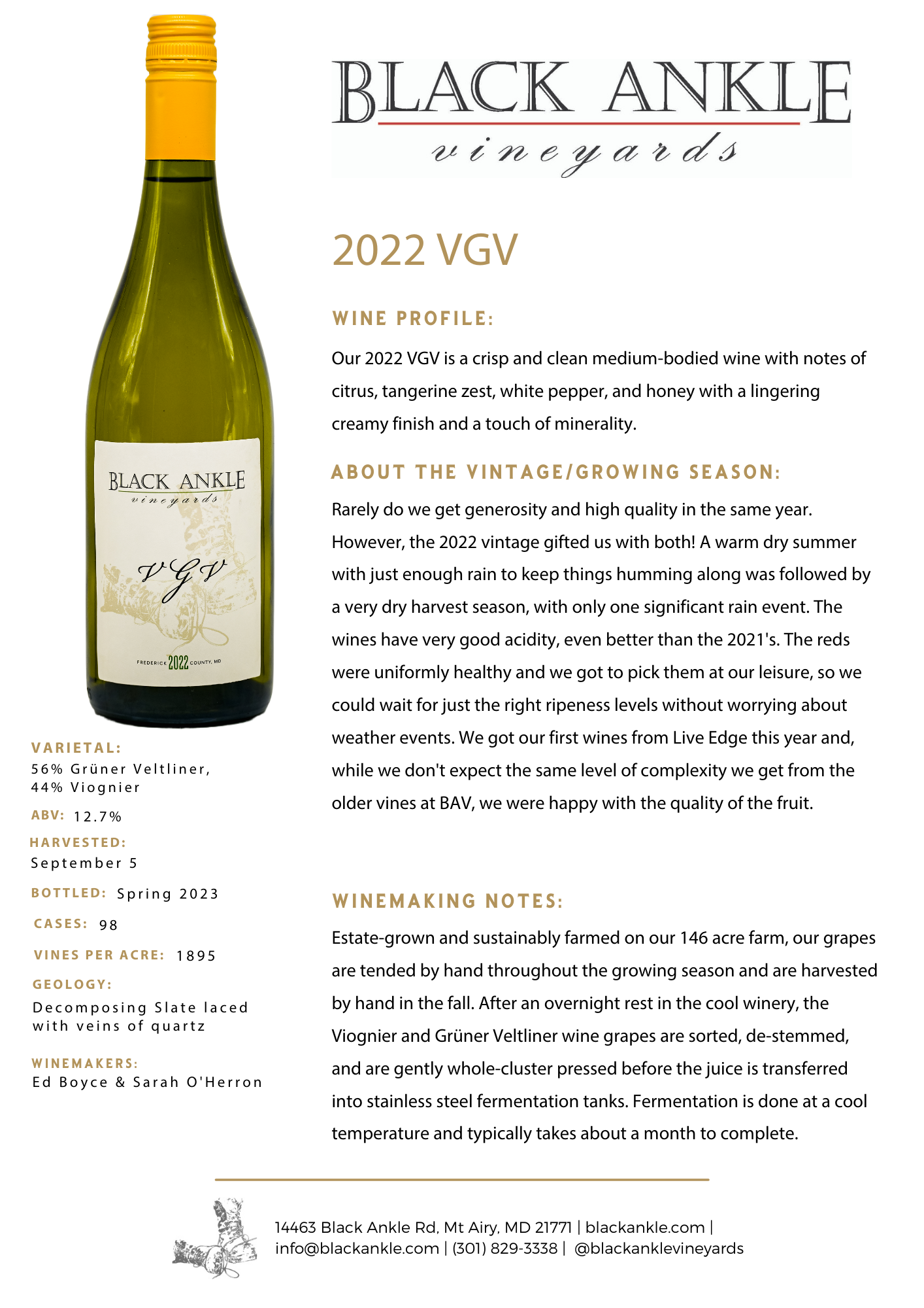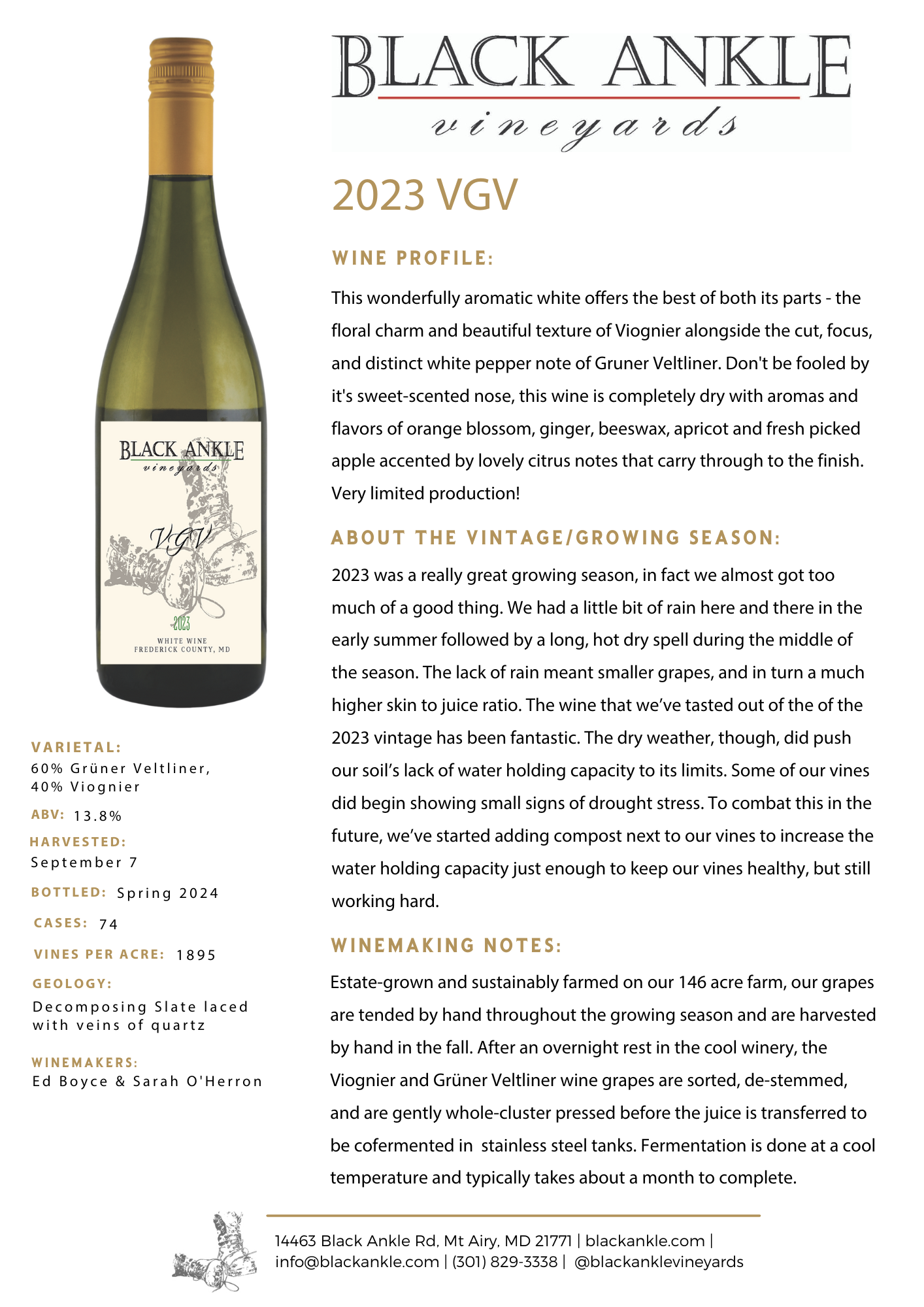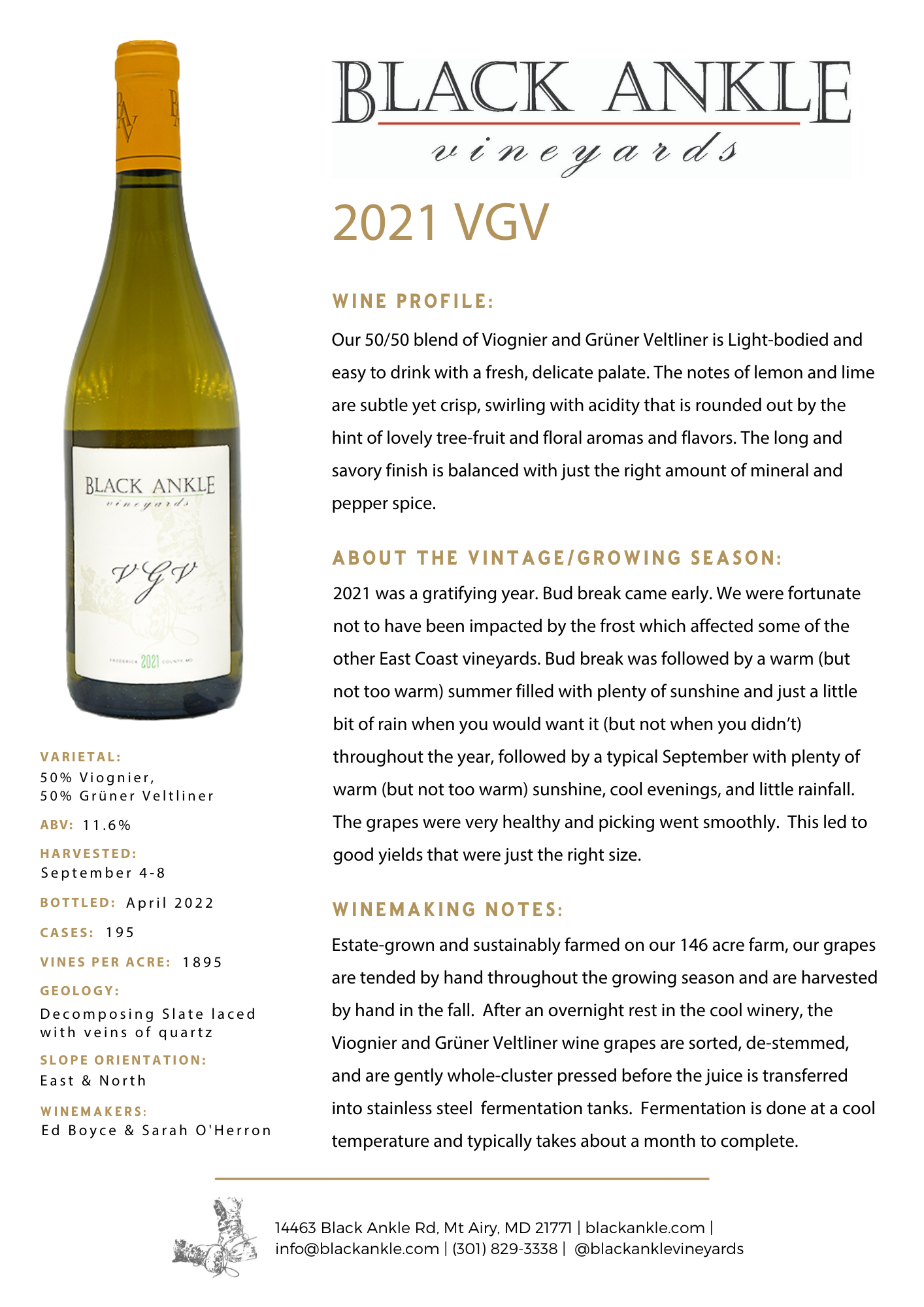 A one-of-a-kind black ankle blend which brings the floral notes of viognier together with the pepper and honeysuckle of grüner veltliner to make a surprisingly delcious wine.